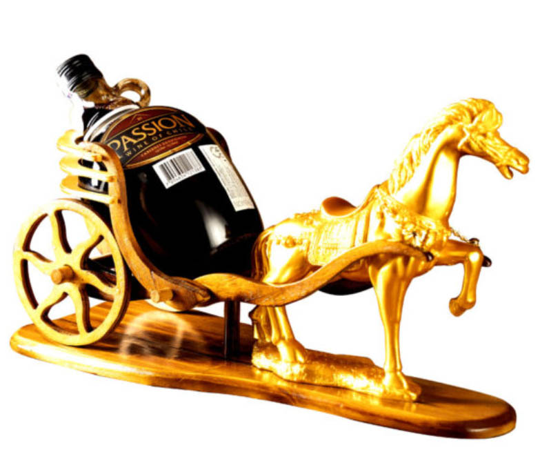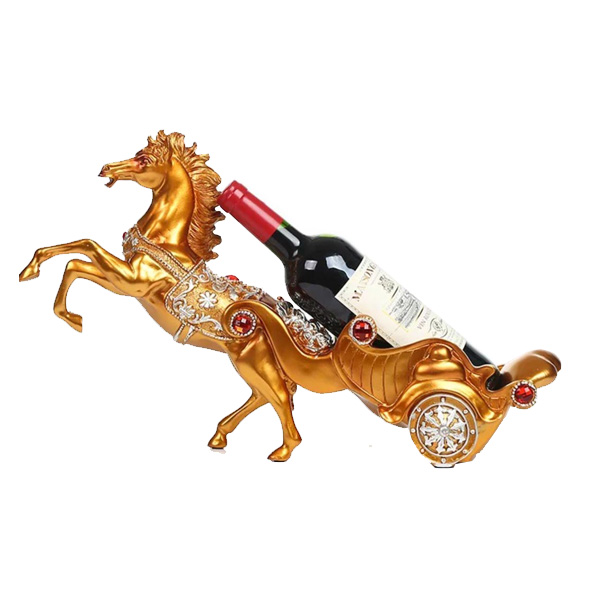 - Kệ rượu được thiết kế tinh xảo, độc đáo: Tượng con ngựa đang phi nước đại kéo theo cỗ xe rượu, mô phỏng đến từng chi tiết như bánh xe, yên ngựa và dây cương—thể hiện vẻ mạnh mẽ, phóng khoáng và quyền lực.