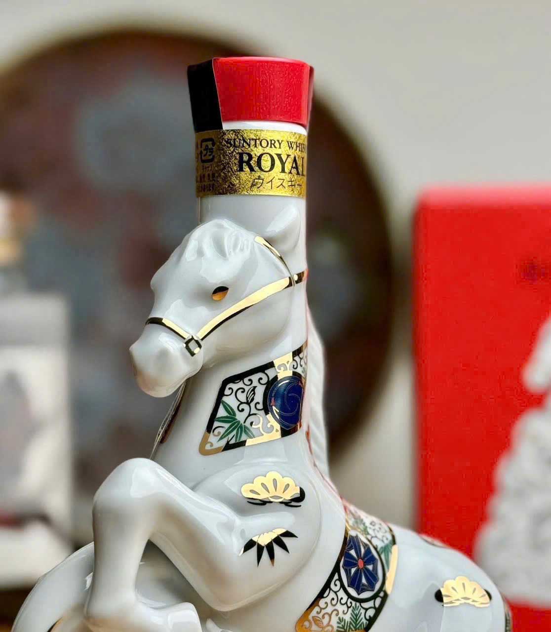 Rượu con ngựa Suntory Whisky Royal phiên bản giới hạn đặc biệt được Suntory Nhật Bản phát hành dành riêng cho Tết Bính Ngọ 2026, được tạo nên để tôn vinh truyền thống thưởng whisky cao cấp và nghệ thuật chế tác gốm sứ tinh xảo – biểu tượng sang trọng dành cho dịp Tết, biếu tặng và sưu tầm.