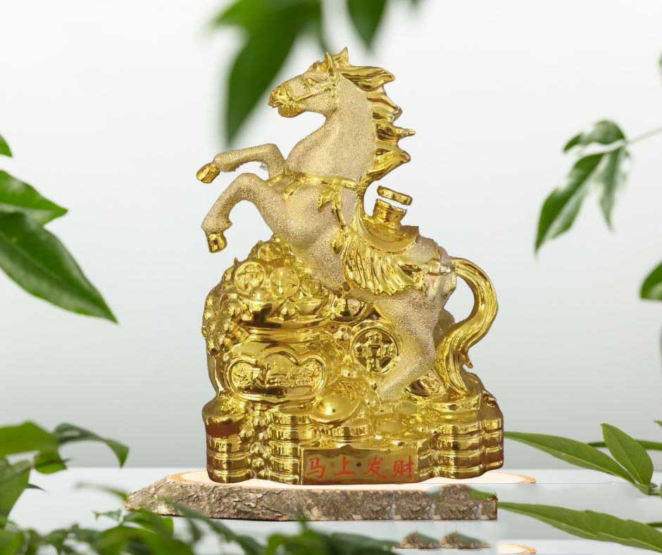 - Thu hút tài lộc – thịnh vượng không ngừng: Tượng ngựa trên đống vàng tượng trưng cho khả năng “giữ tiền” và tăng trưởng tài sản.